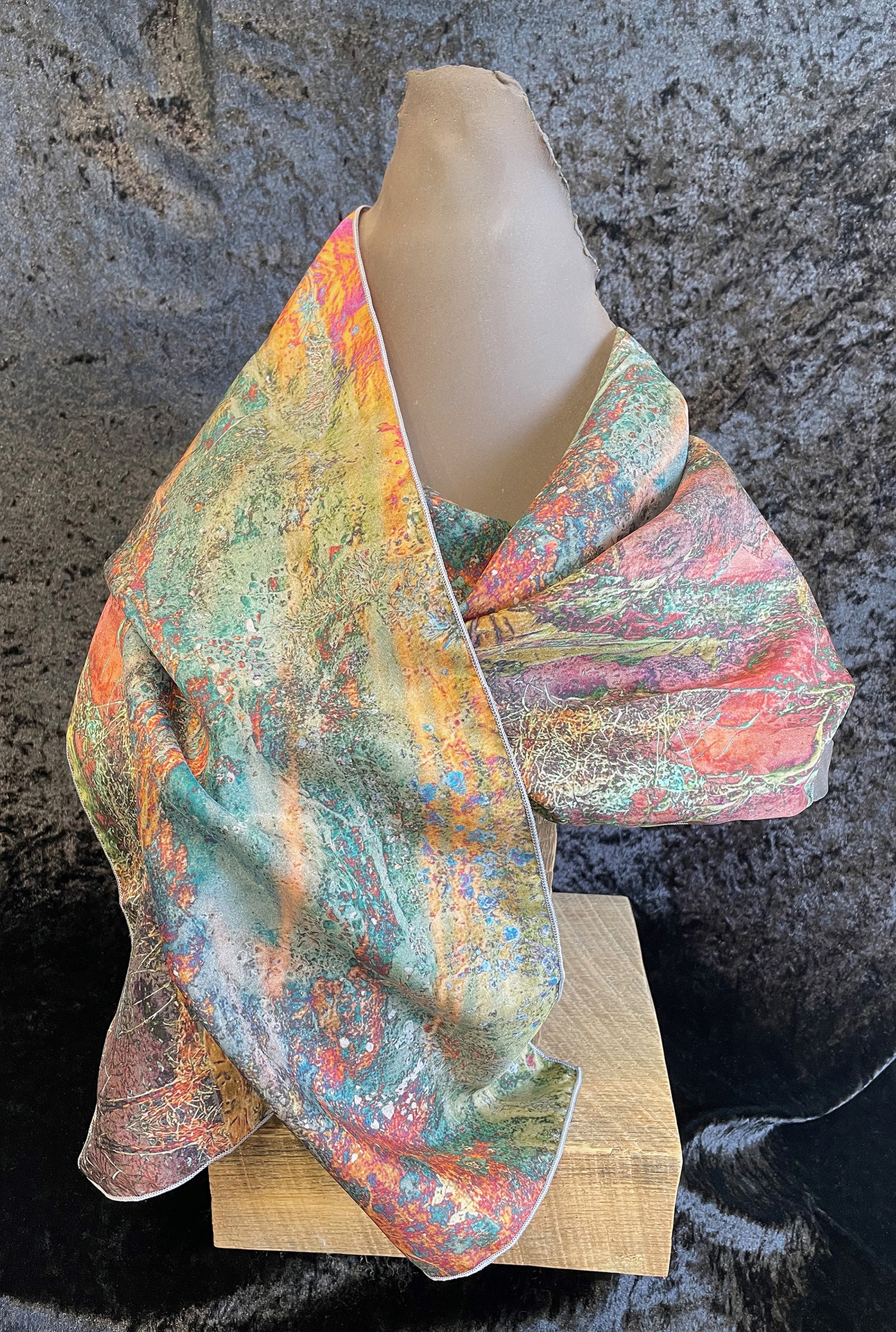 I am a self-taught artist who works across many media. I love to play with bright colors and textures, mixing and layering to get intricate designs. I am known for my digital art, colorful mobiles, 3D digital prints, abstracts, mixed-media, jewelry, custom printed silk scarves, tea towels and handbags. My studio is very much a working studio - I am always working on multiple projects at once. When I’m not playing with paint, making custom jewelry or hanging mobiles, I’m often found experimenting with digital art. My digital art pieces are made by layering and blending photos on top of each other and applying a mixture of effects. The results are always abstract and full of vibrant colors. I like to learn new skills, apply them to different mediums, and experiment to create new and exciting outcomes.