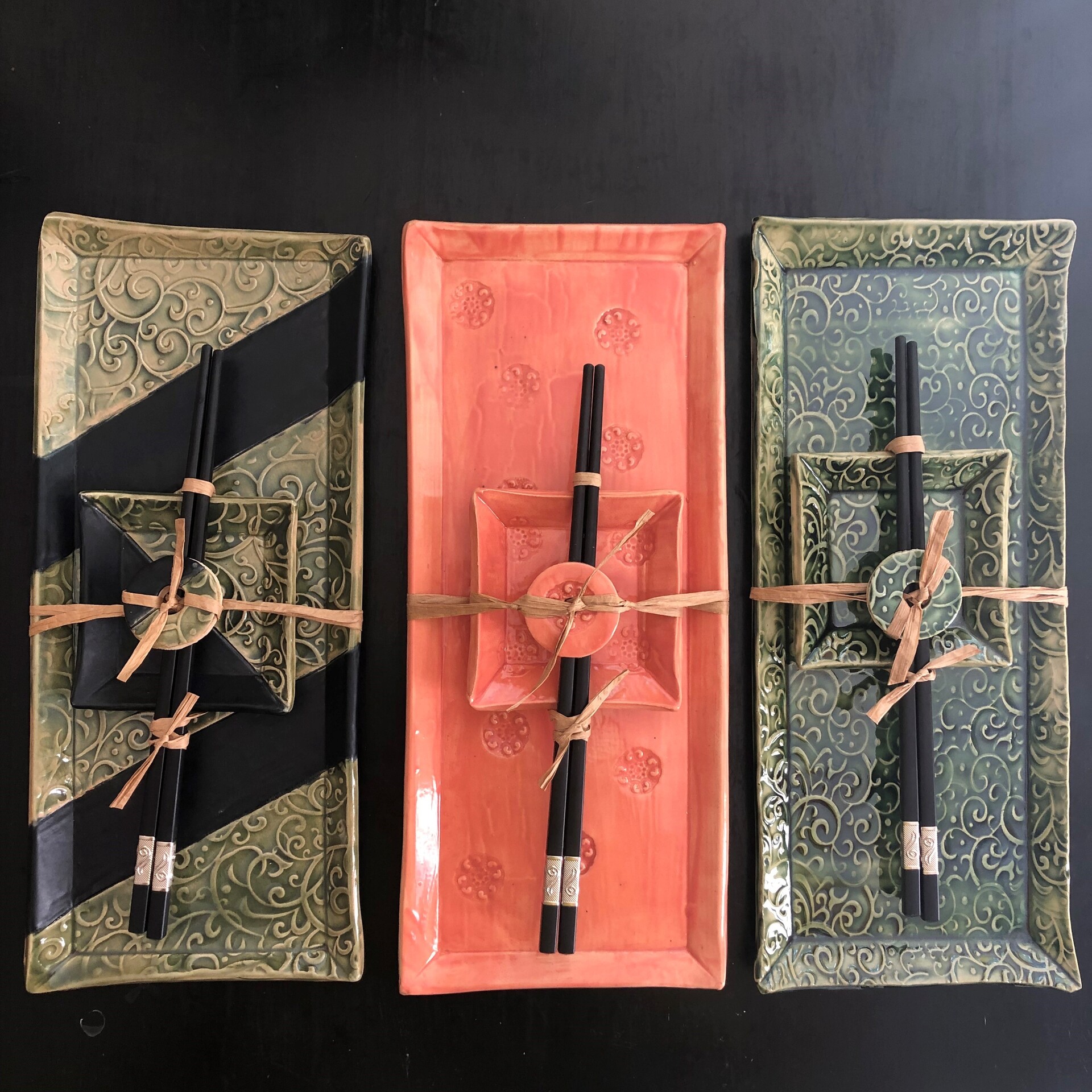 Pottery: mugs (beach, downtown Leesburg, Loudoun -chicken/rooster) and many other mugs; plates, bowls, platters, chip and dip, sushi trays, vases, planters, ornaments, wall hangings, spoon rest, serving bowls, casseroles, soap dishes, utensil crocks, platters with leaf impressions, nautilus and beach dishes, and canister sets. Refreshments, restroom available, free gift to the first 100 visitors.