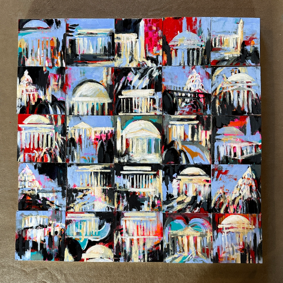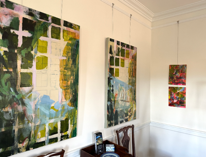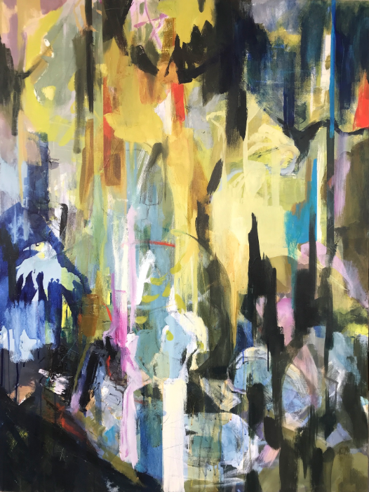 Nancy Ramsey approaches art as an exploration and investigates various ways to represent nature alongside man-made structures and the human form in her abstract paintings. She approaches art as an experiment, beginning much of her work through studying maps or en plein air and exploring ways to represent the world. Nancy builds up and cuts into layers of paint material back in the studio as she melds the images in her world with those in her mind to create a satisfying finished product. The resulting abstract paintings are vibrant and complex, featuring familiar elements alongside others that are more abstract.
