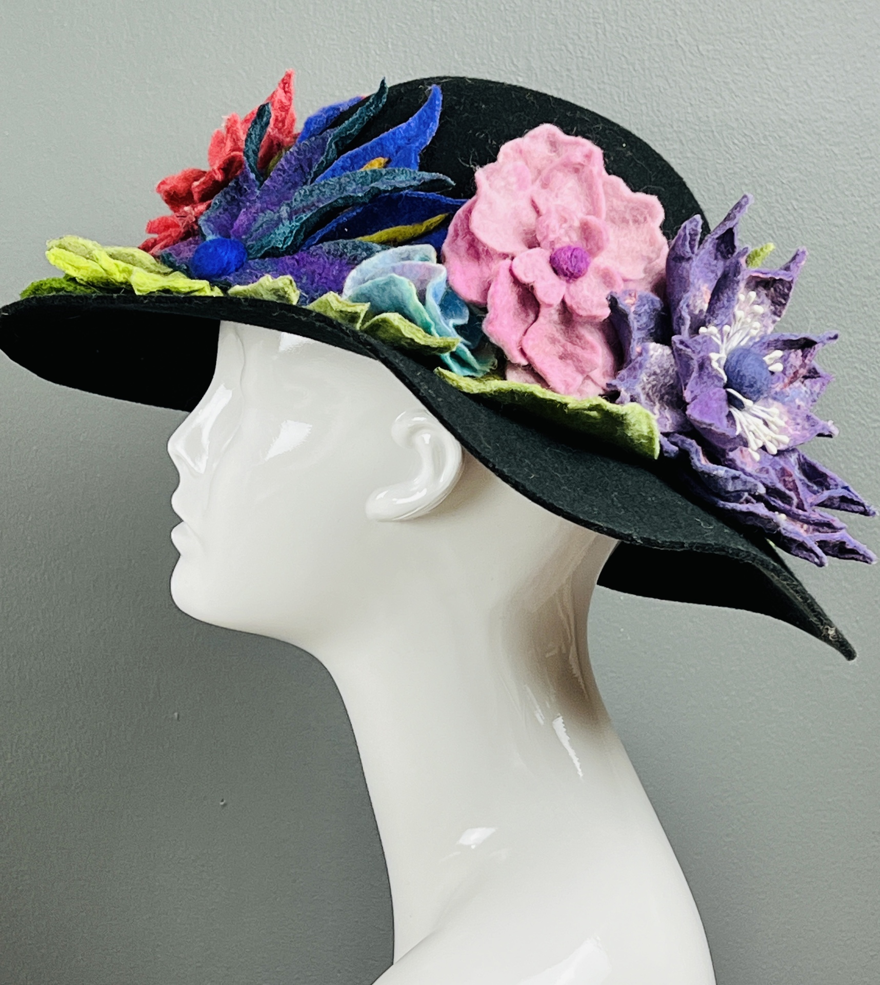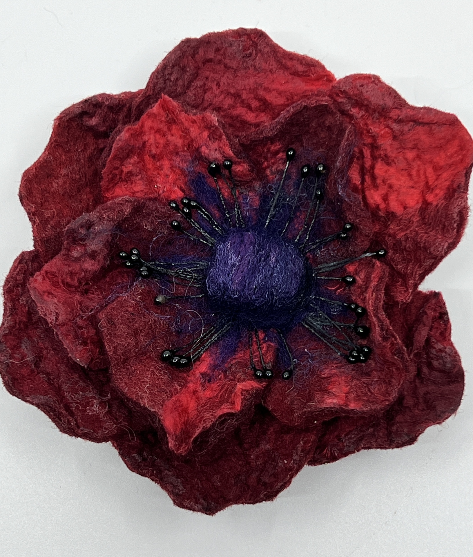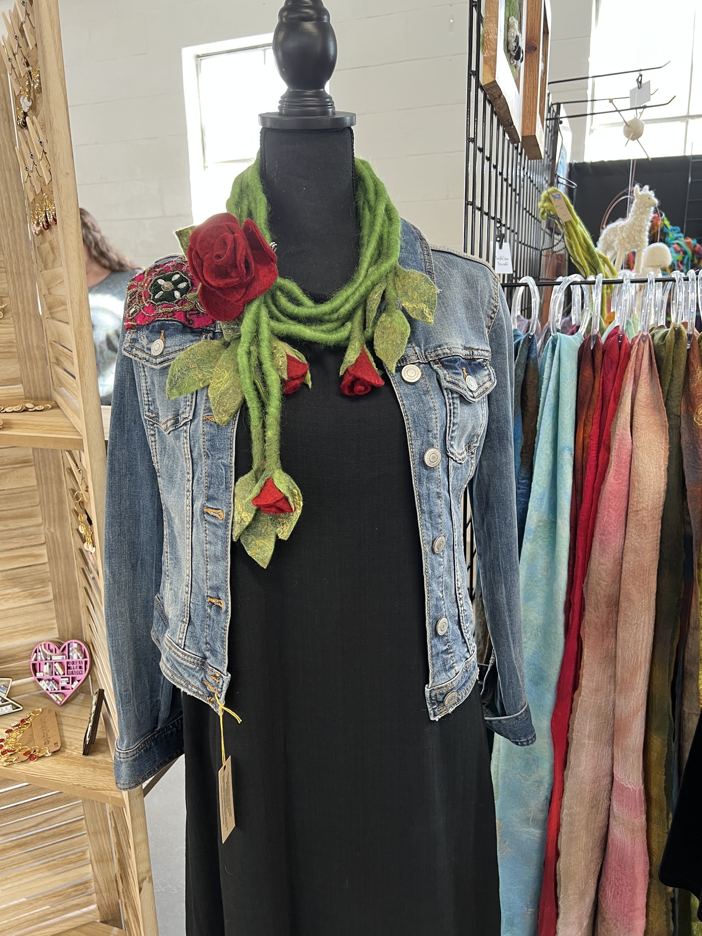 Patricia Stephenson owns and operates Moon on the Mountain Farm and Fiber Arts LLC in Western Loudoun County Virginia. She is an artisan felt maker and shepherd to a small flock of ecologically and humanely raised Merino sheep and alpacas. These lovely animals provide the fine wool Patricia uses to craft decorative felt works and wearable art.