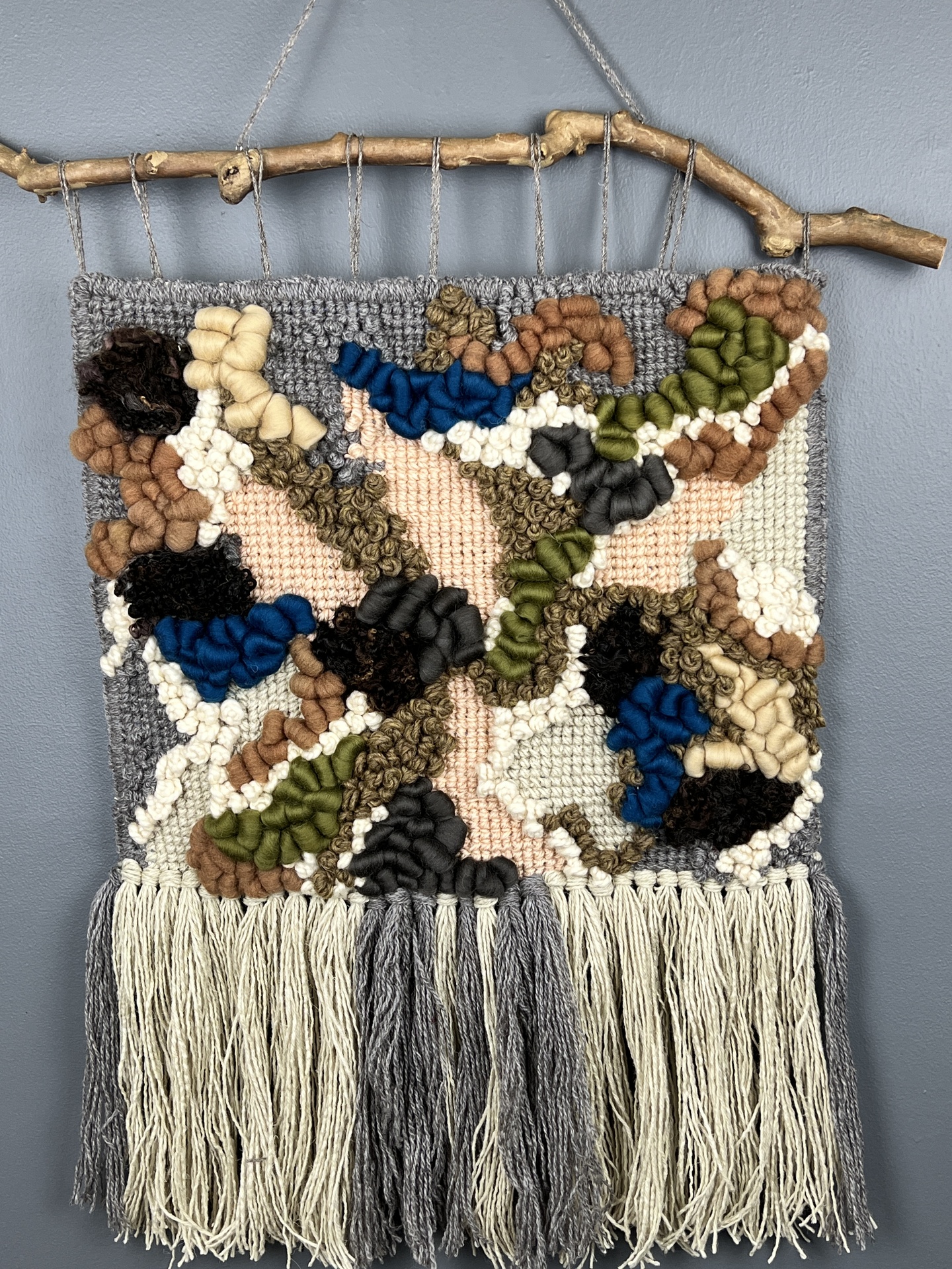 Wet and needle felted wool wall hanging in Wensleydale, Cotswold, Merino and Romney wools from local Loudoun sheep