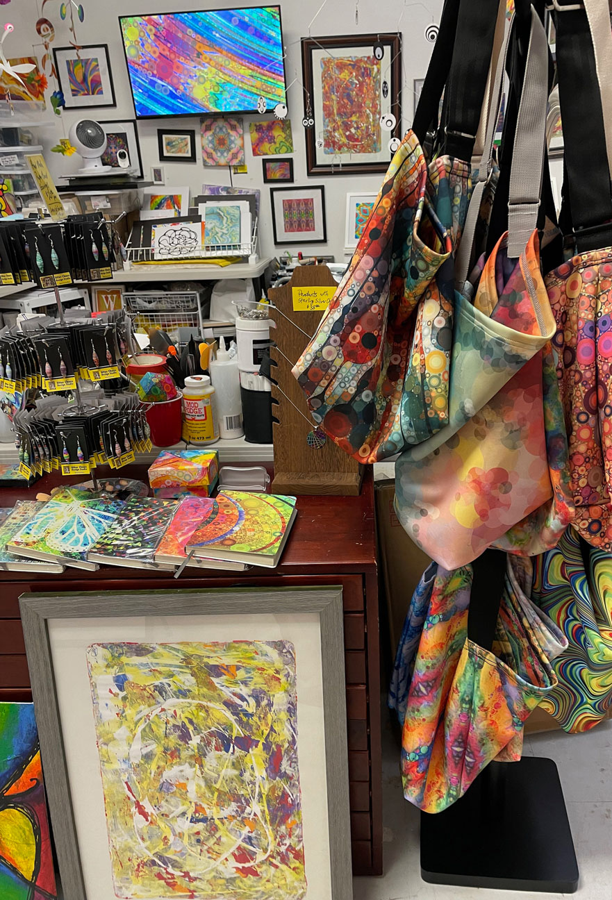 Inside Utter Chaos Designs, Christa Stern's studio at Hill High Marketplace, 2026 Stop #25B, Snickers Gap cluster