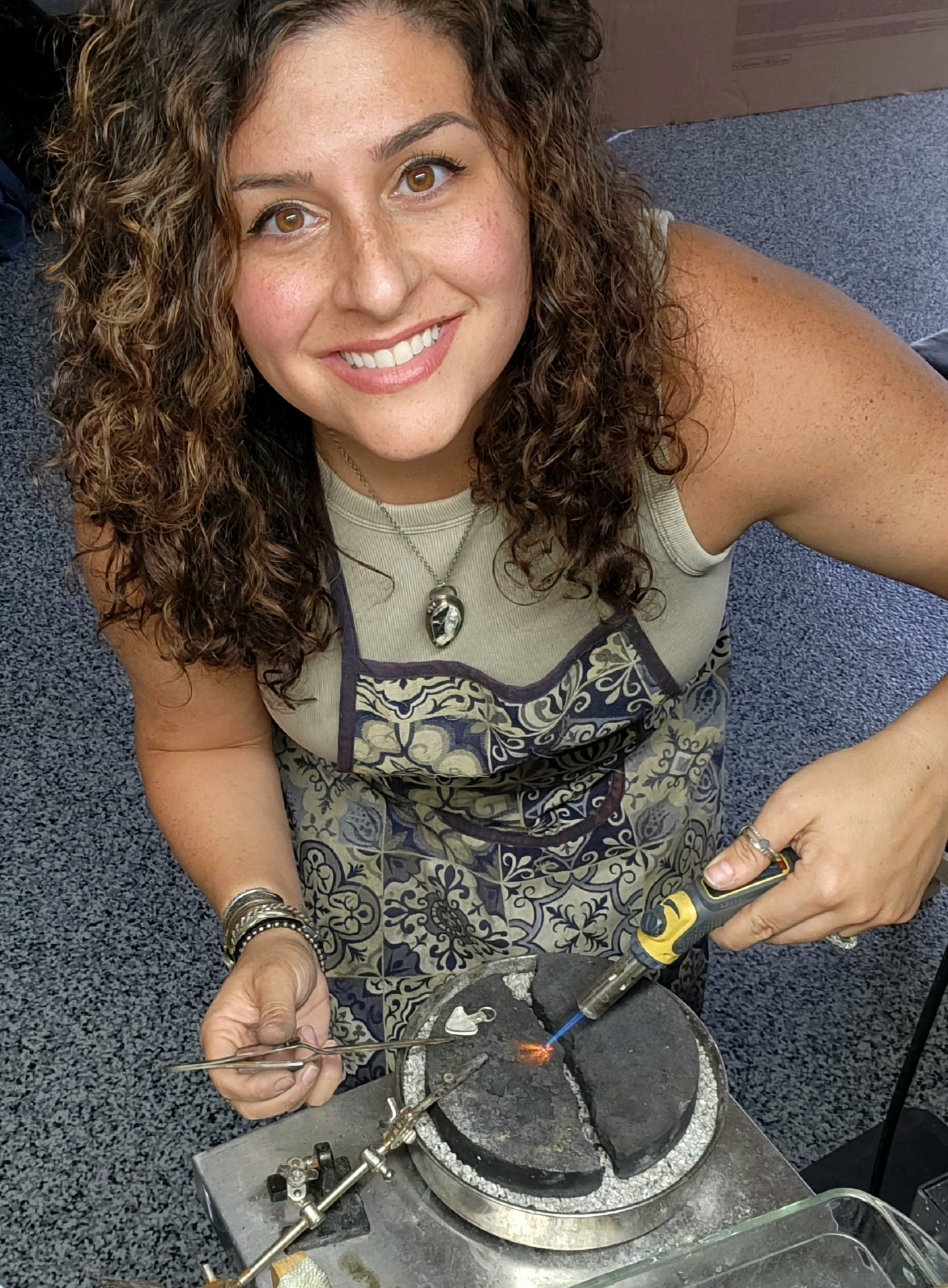 Kayla Wolfson soldering jewelry.