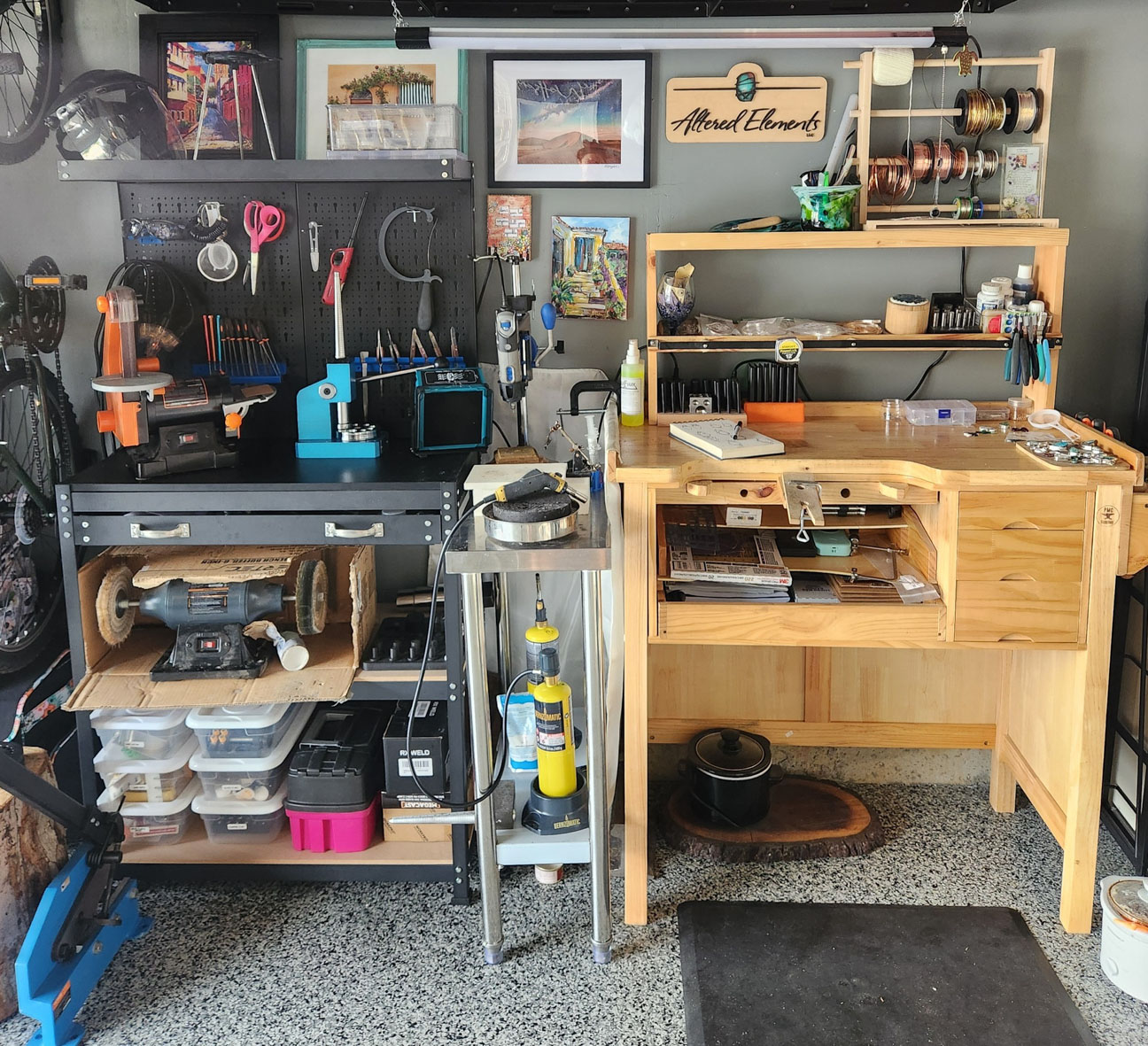Kayla Wolfson's studio, located in her garage. Guest artist at 2026 Stop #5, Catoctin Region Cluster.