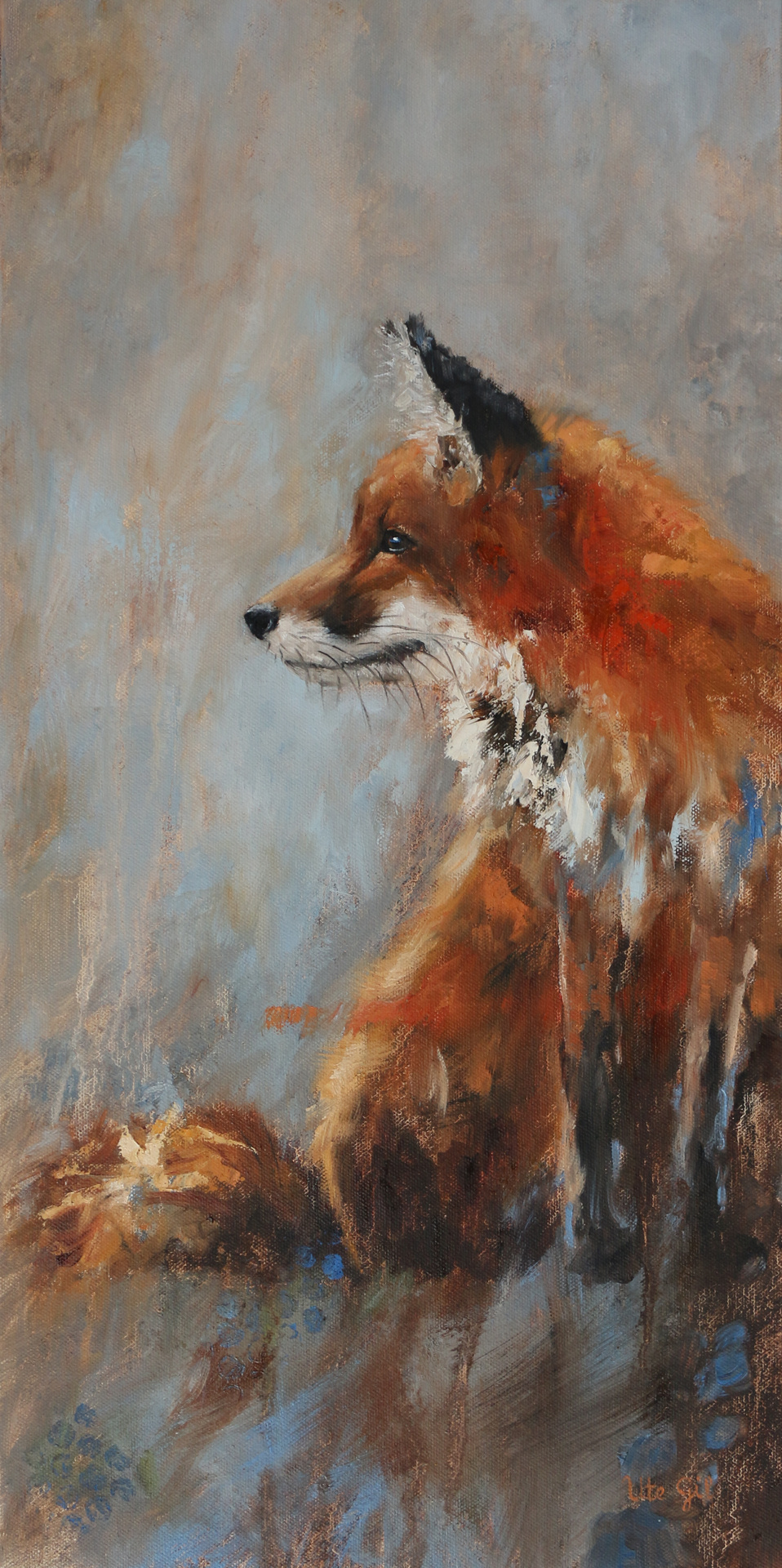 My goal as an artist is to create paintings that show my love of nature and animals while capturing the emotion of my subjects. I consciously reduce details, keeping my brushstrokes loose and impressionistic, allowing the viewer a more personal interpretation of the image. Some paintings have colorful, abstract backgrounds that blend into the subject without the distraction of exact forms. Every painting is different and begs for a different approach. At times I use a disrupted-realism style where the subject of the painting gets deconstructed in areas resulting in an expressive and captivating painting. It is more important to me that a painting is compelling rather than true to reality. Much of my inspiration comes from the rural areas that I visit in Western Loudoun County as well as my travels. The paintings are created both plein air and in my studio. Oil has always been my preferred medium because of its textural qualities.